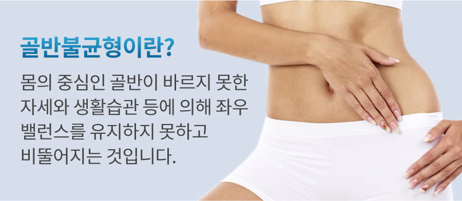 골반은 인체의 중심축을 형성하는 매우 중요한 구조물입니다. 뼈의 구조물들이 강한 근 섬유막과 인대로 결합되어 있는 골반은 인체의 중심과 밸런스를 유지함에 있어 매우 중요한 역할을 합니다. 이러한 몸의 중심인 골반이 바르지 못한 자세와 생활습관에 의해 좌우 밸런스가 깨져 골반이 비뚤어지게 되면 전신 체형 불균형의 원인의 될 수 있으며 또한, 만성 통증의 근본원인이 될 수 있습니다.