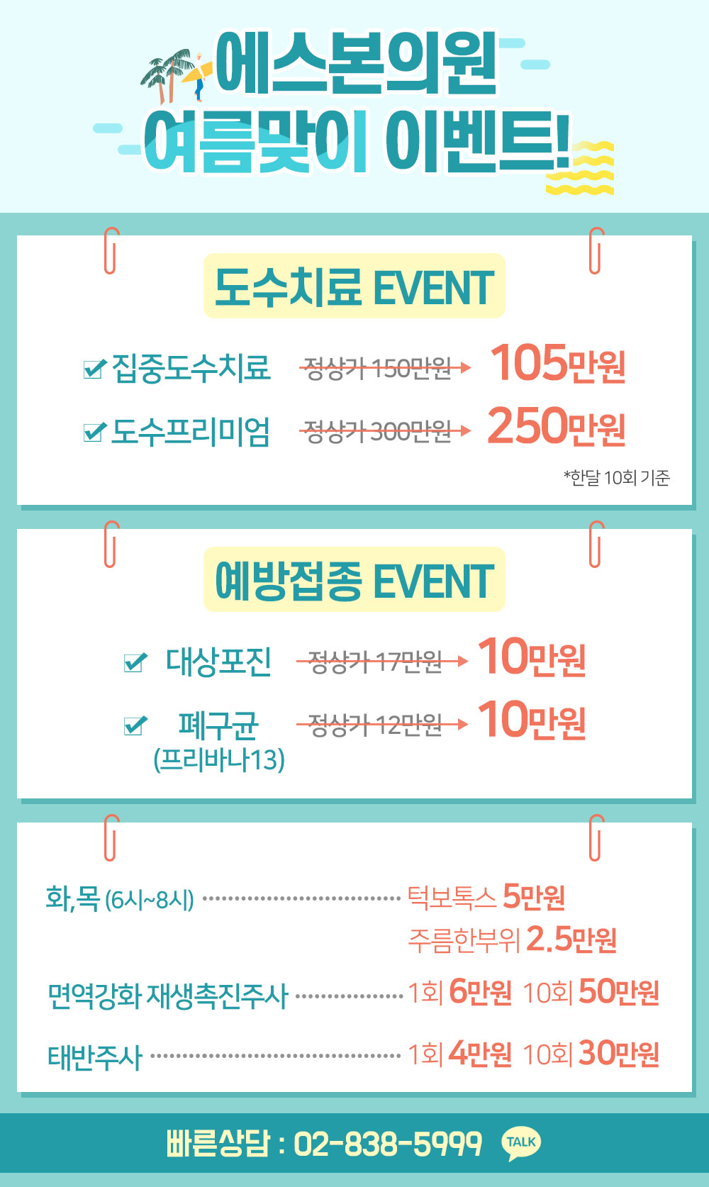 올여름 나를 위한 집중! >>> 에스본의원 여름 EVENT !!! 와 함께하세요~