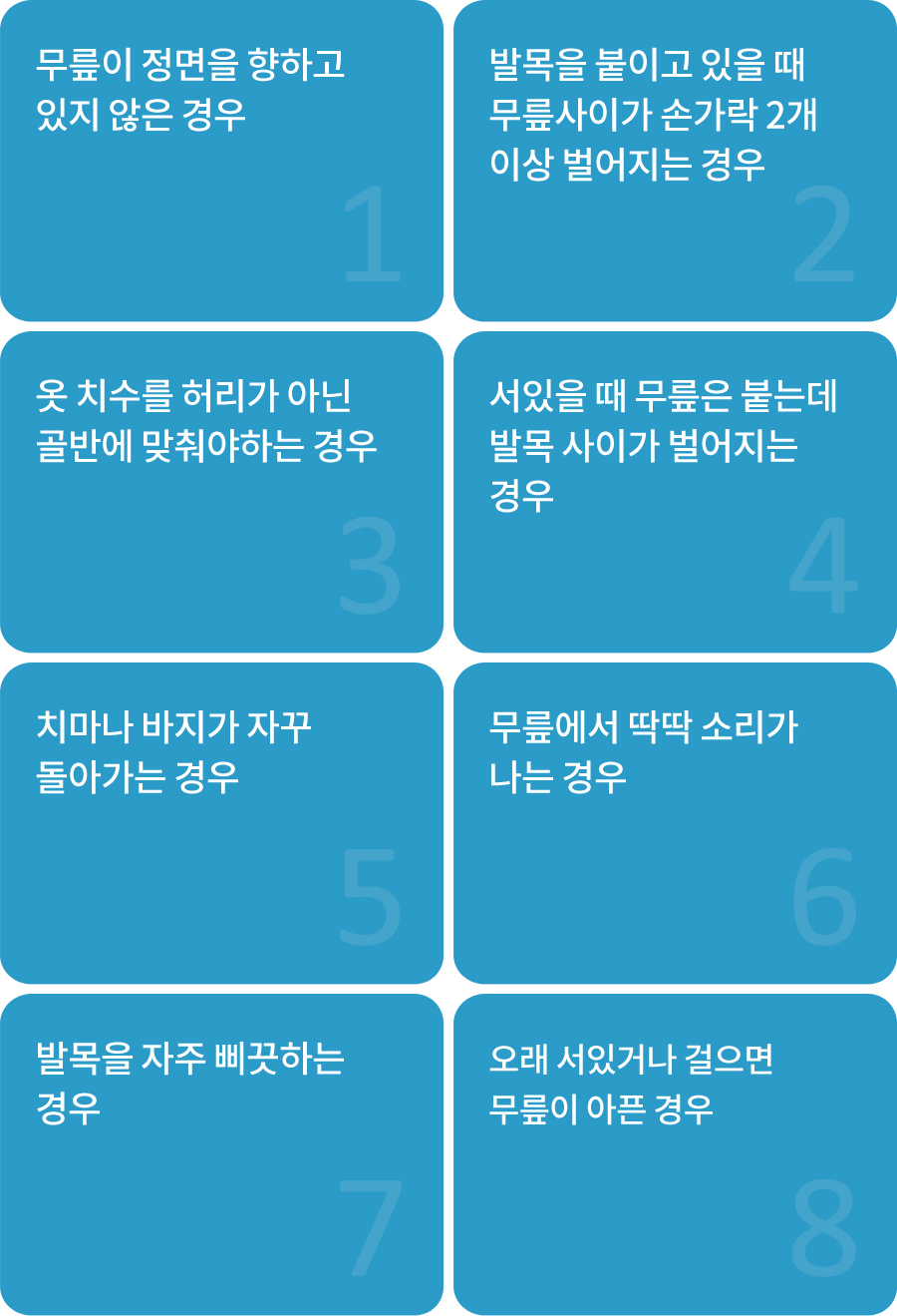 휜다리는 습관적인 자세에 따라 O자형과 X자형 휜다리로 나타납니다.